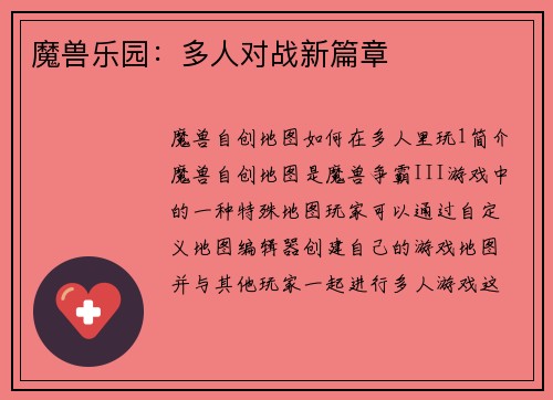 魔兽乐园:多人对战新篇章