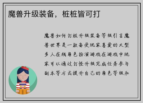 魔兽升级装备,桩桩皆可打